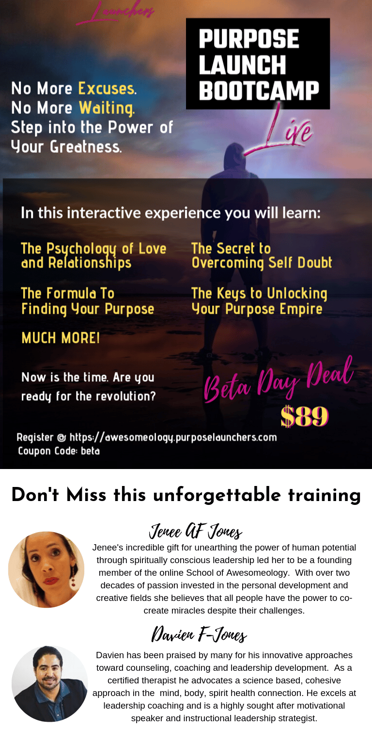 Not only will you obtain important tools needed to organize and Launch Your Life Purpose or Personal Brand, but you will leave with a clear grasp of concepts like: